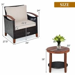 Outlet 🛒 Costway 3PCS Patio Rattan Furniture Set Wooden Frame Cushion Table Shelf Beige ✔️