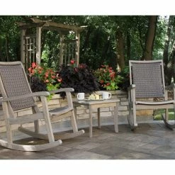 Budget 👏 Outdoor Interiors 7-Piece Composite Top Dining Set With Stacking Driftwood Grey Chairs 💯