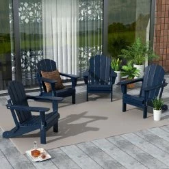 New 🛒 Westin Trends WestinTrends 4PCS Outdoor Patio Furniture Folding Adirondack Chairs, Navy Blue 💯