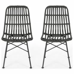 Best Sale ๐ GDFStudio Yilia Outdoor Wicker Dining Chairs, Set Of 2, Gray, Black ๐