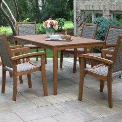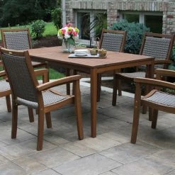 Cheap ๐ Amazonia 7-Piece Rectangular Patio Dining Set | Certified Teak And Wicker ๐