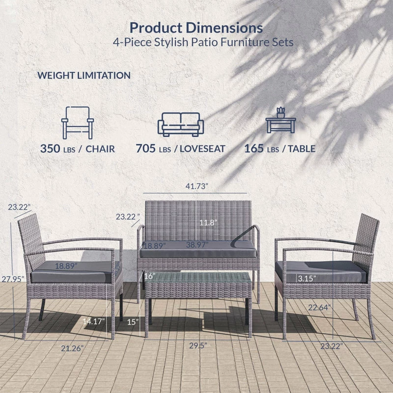 - Elegant and Comfortable- 4-Piece Wicker set will transform your outdoor area into a cozy private retreat