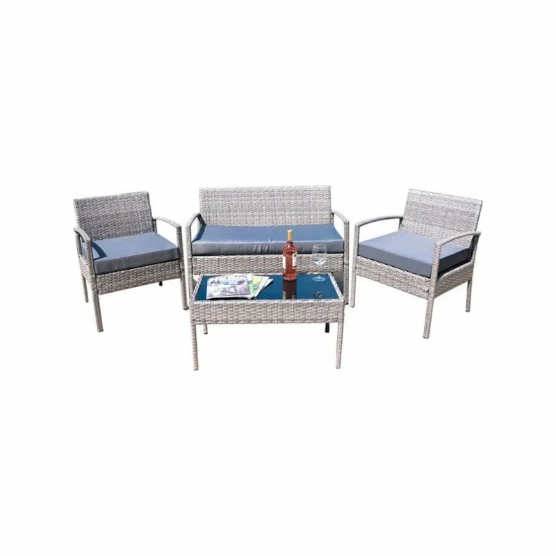 Belleze Patio 4 piece set feature a outdoor weatherproof bench, chairs and table set offers you a quiet, cozy space outdoors to host a conversations, read a book, enjoy morning coffee or whatever else you should find to do outdoors. Complete with seat cushions, it includes one sofa, two chair and a coffee table with tempered glass. The pattern on the chairs adds eye catching detail. Perfect for year round enjoyment.