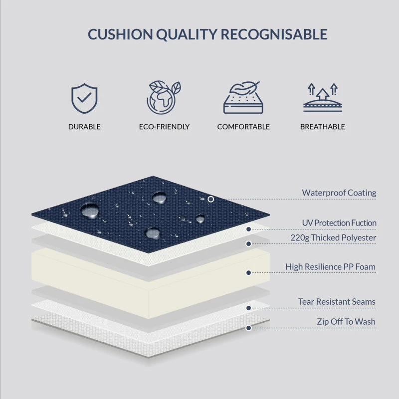 - Seat Cushions- Water-repellent & Stain-resistant fabric – zipper construction for easy cleaning