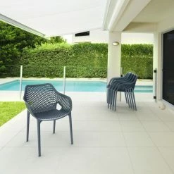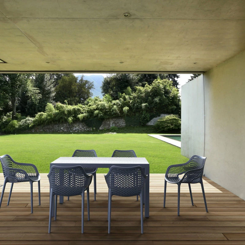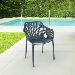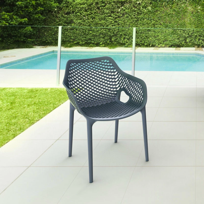 Bring cool contemporary style to the table by way of the Air Dining Armchair. This unique seat features soft curves, slim legs and a perforated design that doubles as art for your at-home eatery, whether that eatery is indoors or out.