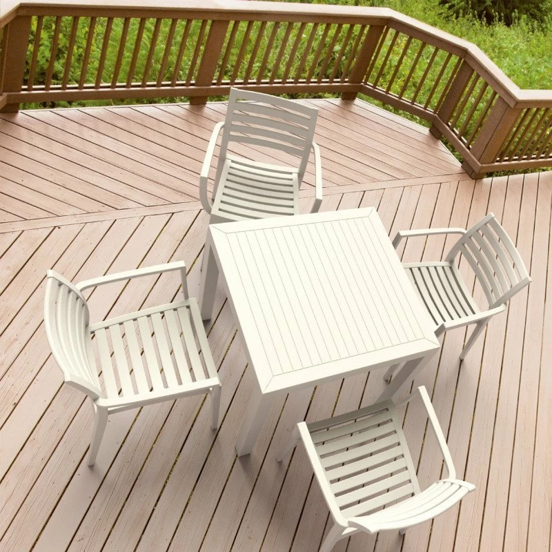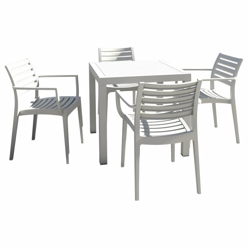 Dine, sip and socialize with friends in sleek, contemporary fashion with the Artemis dining set. This chic ensemble looks as good inside as it does on the patio, with clean lines and a crisp white finish that add sharp style to your design.