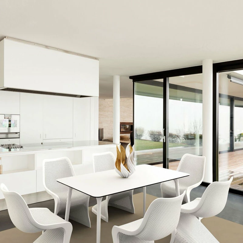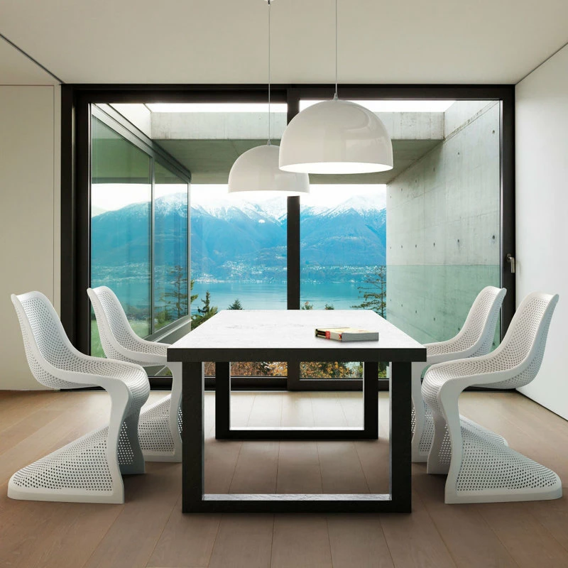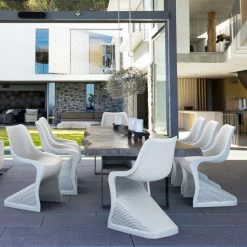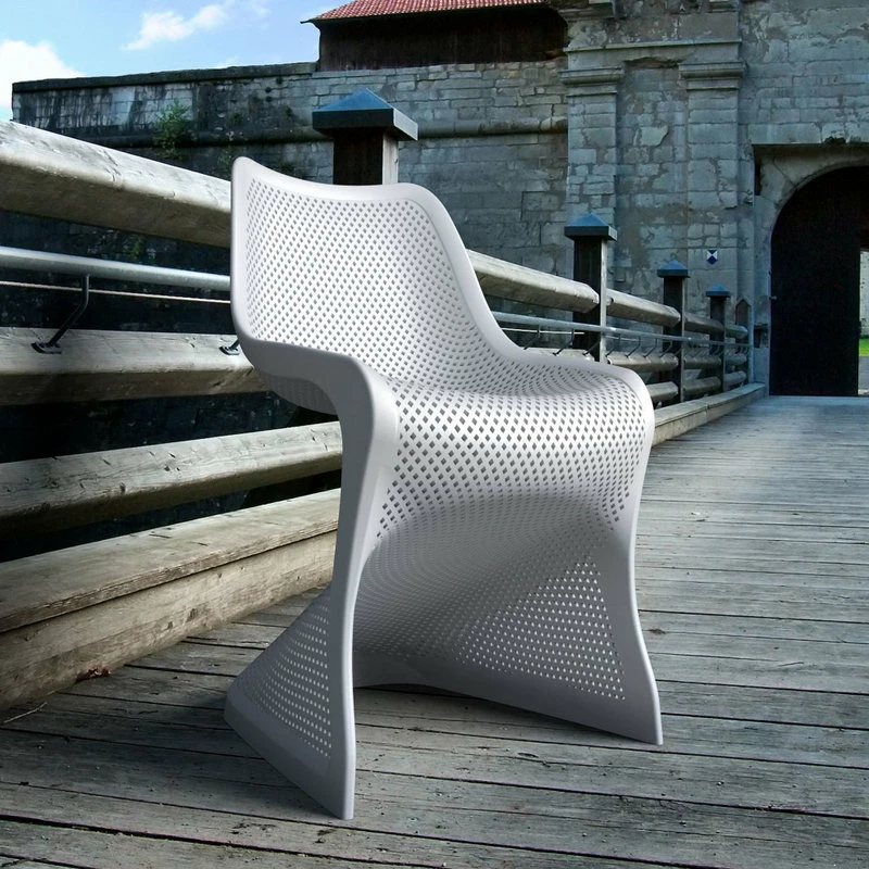 There is no shortage of stylish form with the Bloom chairs. With their dynamic curves and perforated surfaces, these all-weather seats up the drama and interest on your patio design. You can use them to dress up a simple surface outside, or even feature them indoors as an unexpected touch in your formal dining room.