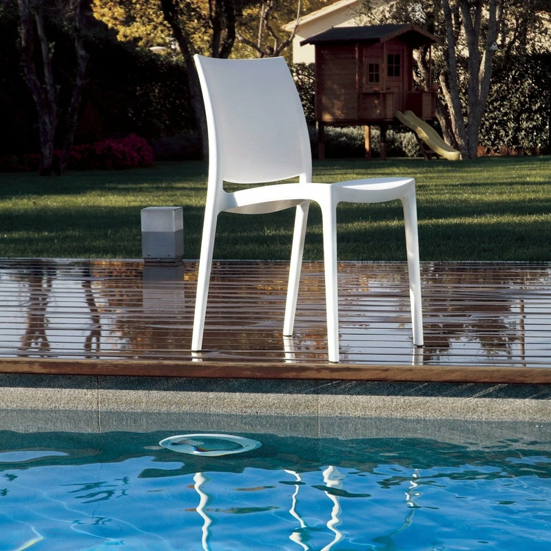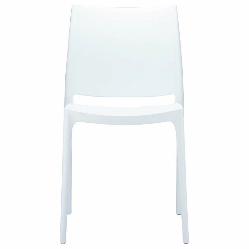 Maya indoor outdoor dining chair. Made from commercial grade resin with gas injection molded legs. Preferred by restaurants, cafes and hotels. Extremely durable for outdoor temperatures. Easy cleaning. Perfect for heavy use indoor outdoor areas.