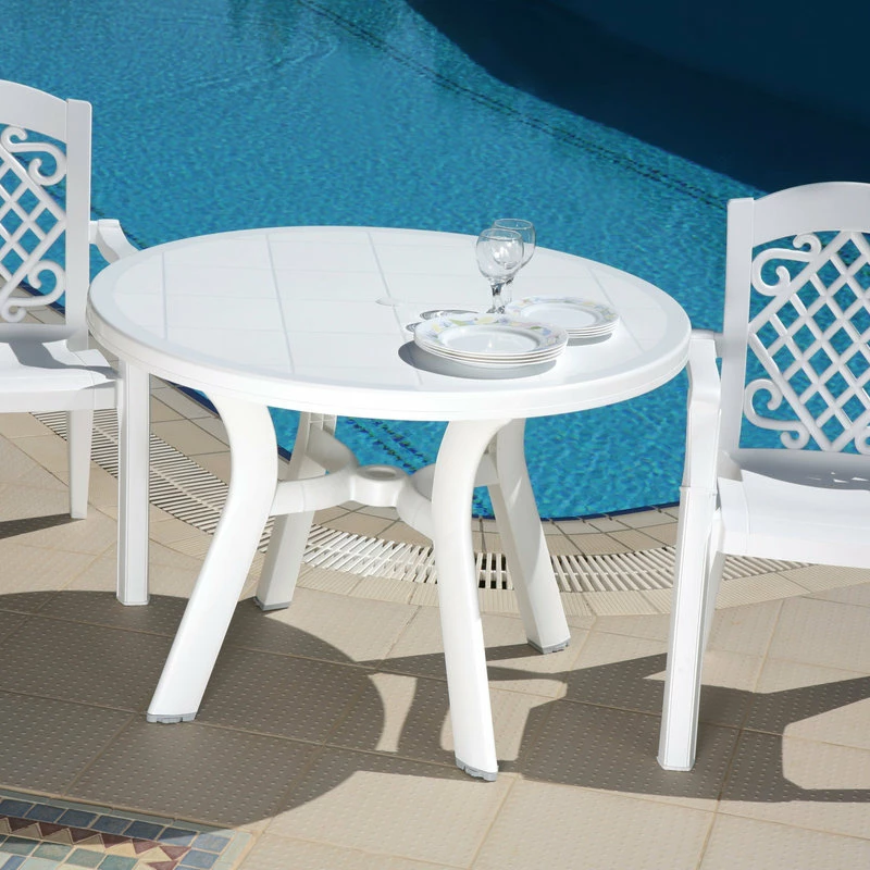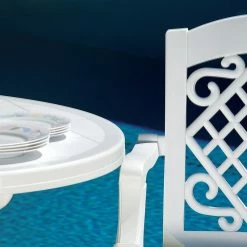 Give your patio an extra surface with the durable Truva Round Dining Table. This tough table withstands the wear and tear from all your outdoor fun — tanning oils, chlorine and saltwater — and is versatile enough to place anywhere in your yard.