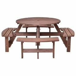 Entertain, relax and enjoy a dining with the traditional 8 Seat Wooden Bench Round Table. Features a beautiful blend of classic style and practicality, this elegant set is a welcome addition to lawns, patios, decking areas and many other occasions. It is made of fir wood, sturdy and durable. And it also be treated with water-based paint, which adds an extra layer of protection and provides a beautiful, lustrous finish. It is a hassle-free gorgeous furniture and will add some rustic charm to your garden.
