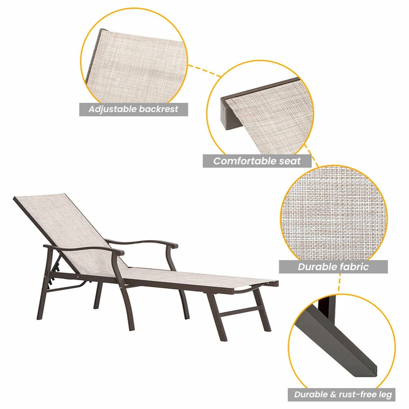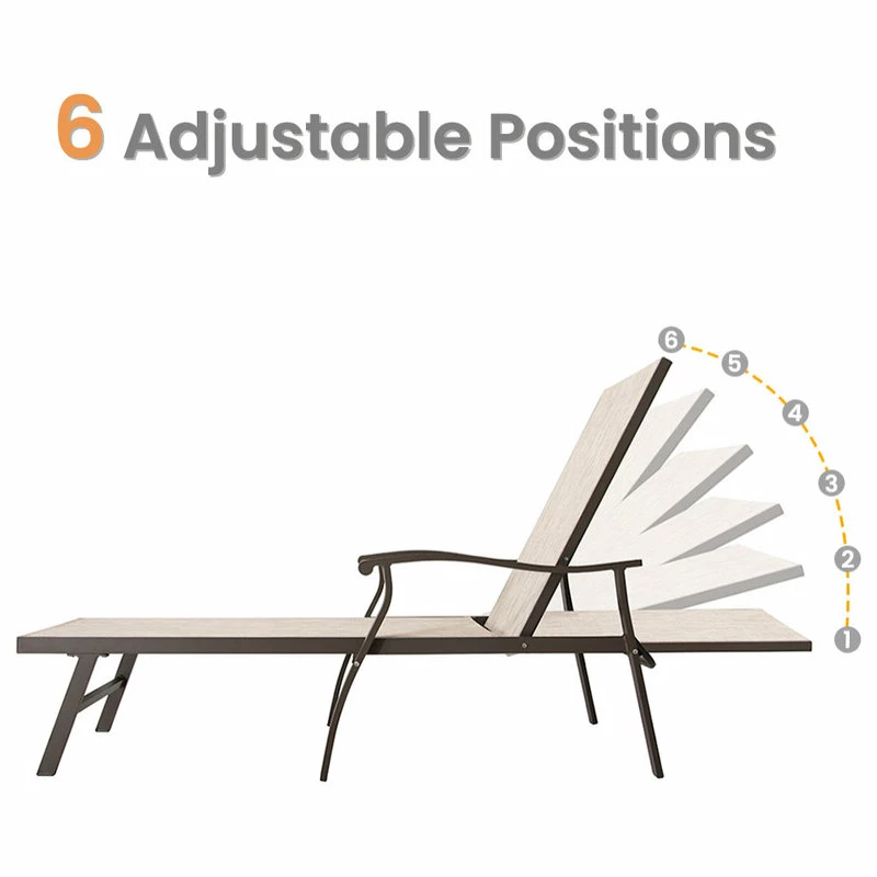 β γDurable & Rust-free Frameγ Completely constructed of powder coated Aluminum frame in classic brown finish, this lounge chair ensures its durability and rust proof. Also, it provides sturdy support with max weight capacity of 270 lbs. You will feel free to lie down on the lounge.