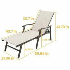β γChaise Lounge Dimensionsγ Overall dimensions: 59.84ββL x 21.06ββW x 41.73ββH; Seat Height: 13.58ββ; Backrest Length: 30.71ββ; Lay Flat Size: 76.18ββL x 21.06ββW x 13.58ββH