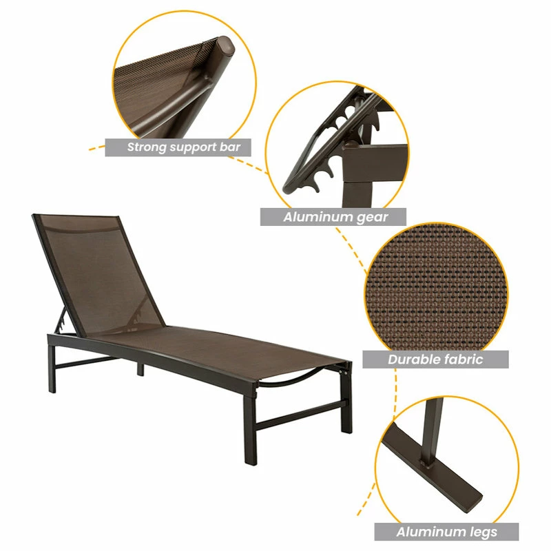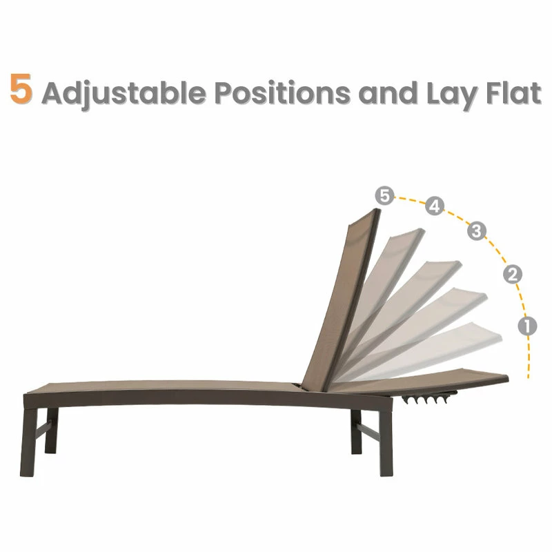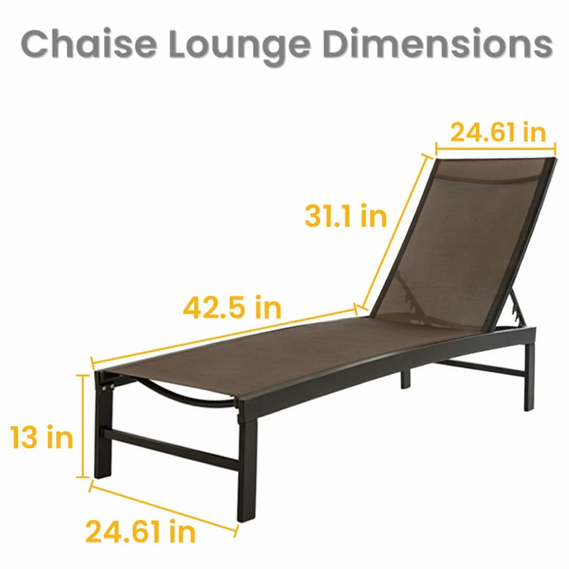 β γDurable & Rust-free Frameγ Completely constructed of powder coated Aluminum frame,this lounge chair ensures its durability and rust proof. Also, it provides sturdy support with max weight capacity of 270 lbs. You will feel free to lie down on the lounge.