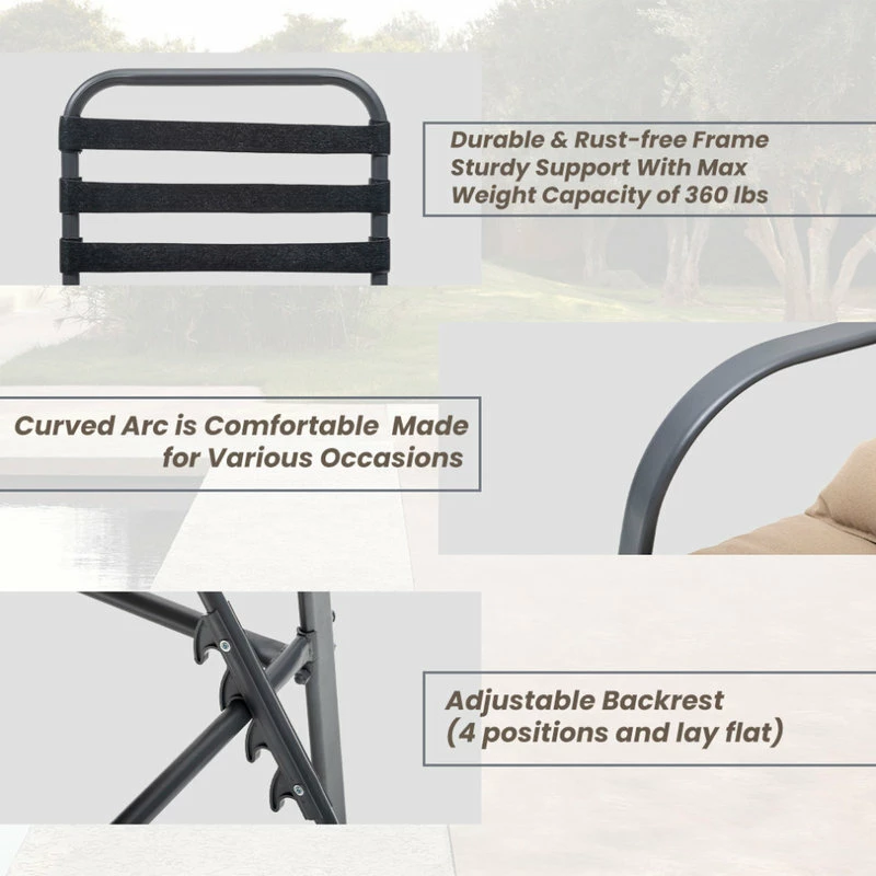 - Versatile functionality: The backrest of this patio lounge has 5 adjustable recline positions ranging from almost upright to flat. It’s convenient for you to lay back for a nap when it reclines flat, or have a great relax time when recline high position.