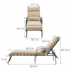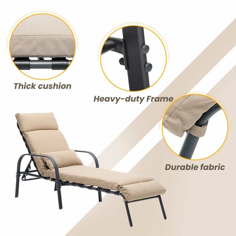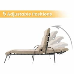 Adjustable patio chaise lounge for outdoor beach pool backyard, indoor lounge chairs with cushion and pillow.This chaise lounge chair makes a good addition to any outdoor indoor setting.The backrest of this patio lounge has 5 adjustable recline positions ranging from almost upright to flat.Weight capacity holds up to 360 lbs.