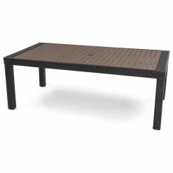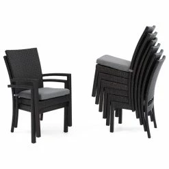 Take your meals alfresco — with all the comfort of your dining room — with the Deco patio set. This contemporary ensemble includes a large dining table, two chairs with arms and six armless chairs, and it stands up to sun and moisture with its powder-coated aluminum frame and handwoven resin wicker body. The set’s charming finishes, like the faux wood tabletop and weather-proof foam cushions, are what set it apart and give you a stage for summers filled with meals in the open air.