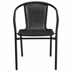 - Black Rattan Back and Seat with Black Powder Coated Steel Frame
