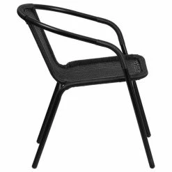 Complement your terrace and patio with these beautiful rattan chairs to surround a patio table or to seat waiting guests in the lobby. Versatile inside and outside the restaurant these lightweight stack chairs are a practical choice for any business. The full back with integrated arms provides comfort to customers. When used indoors the metal chairs have floor glides to protect your flooring and stack up to 23 high to clean floors and to store. Get cozy around the fireplace in winter months and place near your pool when it’s nice outside. The all-weather frame is designed for use throughout the year, for longevity, care should be taken to protect from long periods of wet weather. Pair these metal dining chairs with a glass or metal patio table to complete your outdoor dining setting.