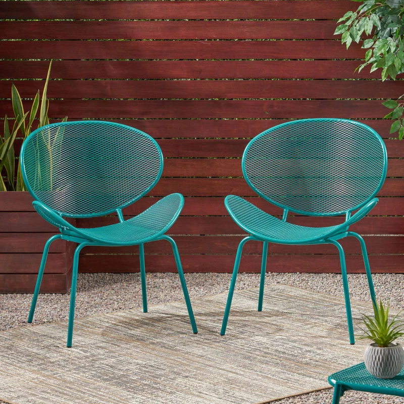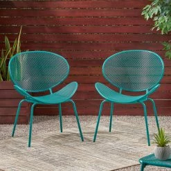 Bask in the refreshing scent of the outdoors by relaxing in our set of curvaceous chairs. Featuring breathable mesh seating and groovy shell shape frame, our chairs offer a timeless yet modern style for your backyard while providing ultimate comfort. This chair set hugs you in all the right places with its swooping curves and smooth, rounded frames. Complemented by a smooth matte finish, this lovely set not only brings your patio an upgraded look but is also made to last with its durable structure.