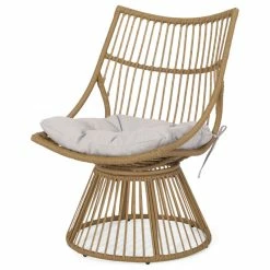 - WICKER HIGH BACK CHAIR: The lounge chair features a wonderfully retro vibe with seating that offers a curvaceous high back design and an intricately wicker-wrapped finish. It sits atop an eye-catching Papasan base to create a unique look with a mid-century influence for your space. Please note that this chair does NOT swivel.
