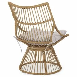 Embrace the warm rays of the sun in the perfect seating arrangement for one. Featuring a chair with a refined high back design combined with a Papasan base, our chair and table set will be an excellent addition to any backyard or patio area. This lounge chair is perfectly paired with a cage frame side table, turning any outdoor space into a spectacular oasis. From tufted water-resistant cushions to its intricate wicker-wrapped finish, this set offers hours of relaxation for the summer-loving enthusiast.