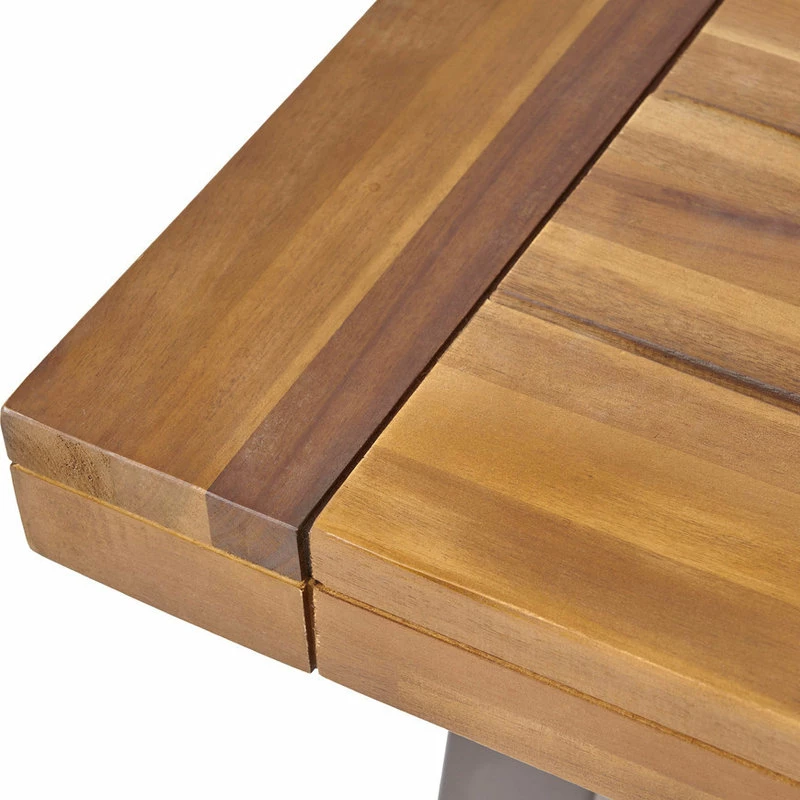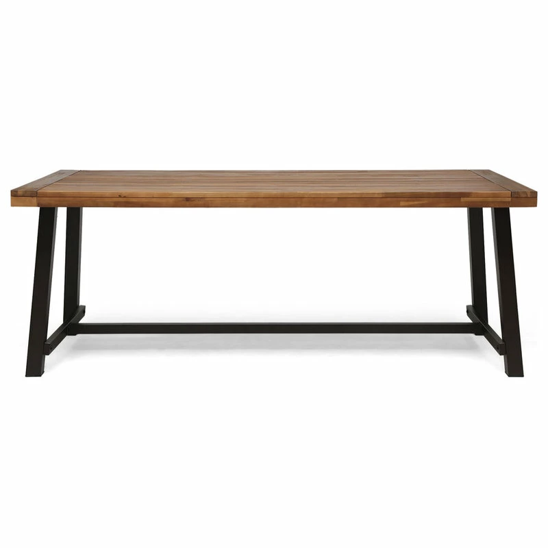 Start your summer off right by hosting a lively get-together under the warm evening sky with our outdoor dining table. From dinner soirees to casual afternoon barbeques, our dining table will have you covered for all sort of occasions. With clean, minimalistic lines, our table is perfect for seating up to eight people. Featuring a gorgeous acacia wood table top and a smooth metal frame, our dining table offers your backyard or patio space a modern industrial look for a trendy transformation.