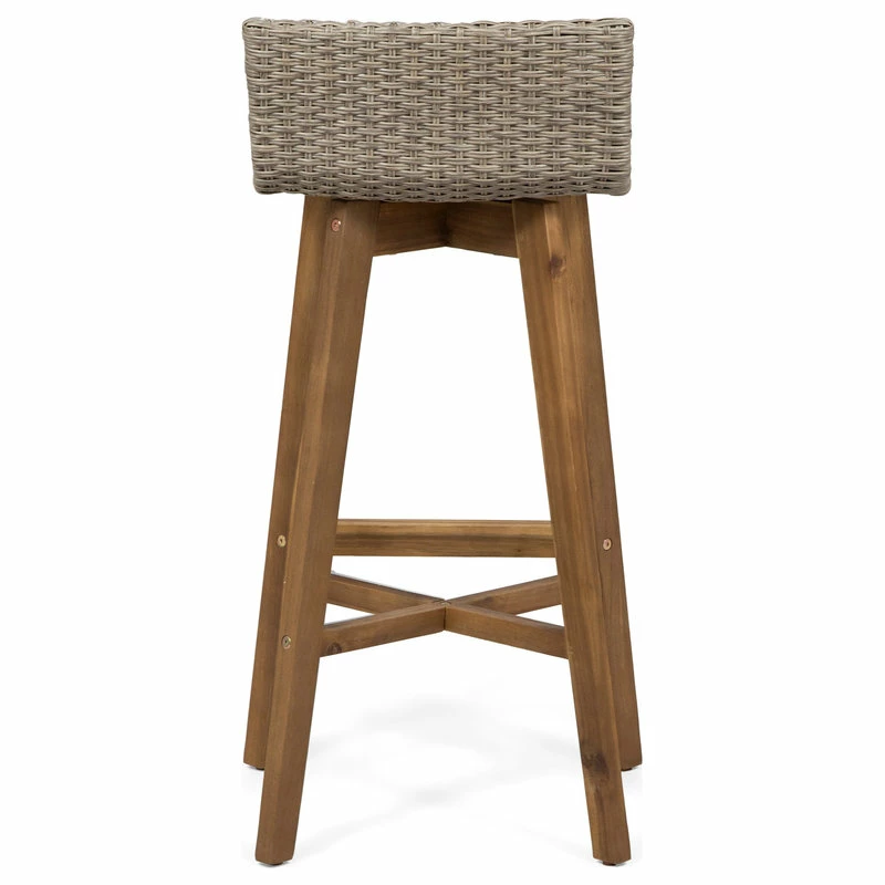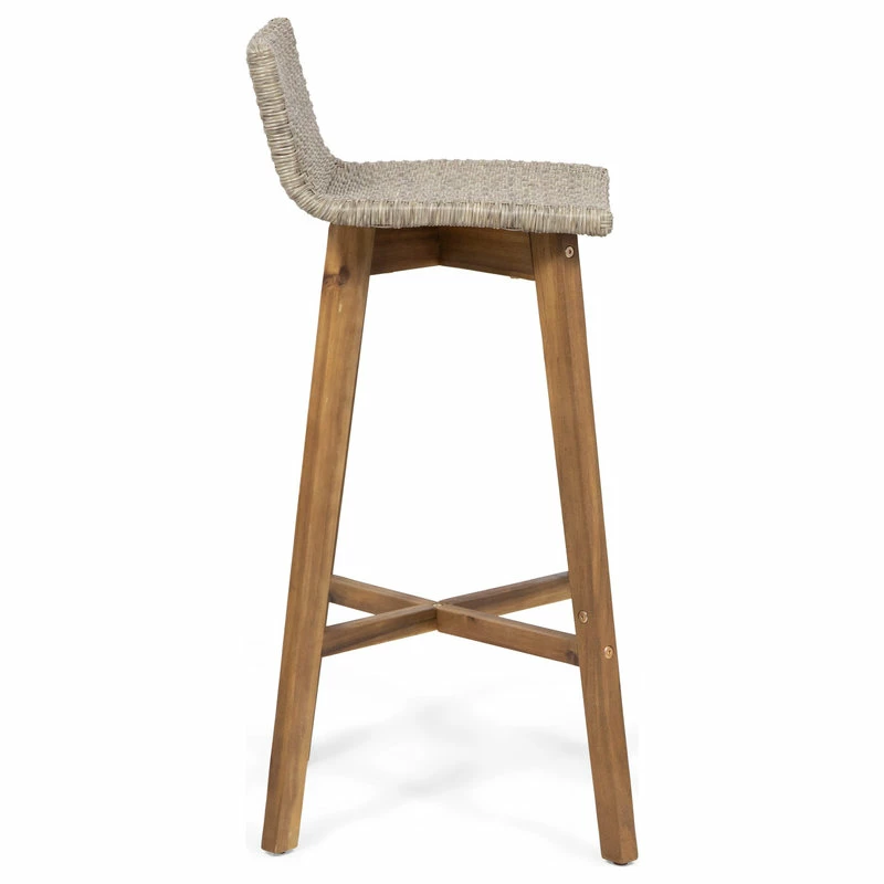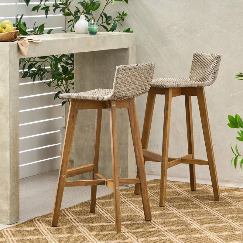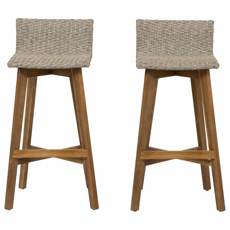 Bring the trendy atmosphere of your favorite bar to your own home with the perfect addition of our contemporary barstools. Featuring a refined wicker weave and a stunning X-stretcher frame, this set of barstools offers a homey yet delightfully polished look to any outdoor bar space or bistro set. Our impeccable barstool set is crafted from solid acacia wood, giving you and your guests a stable and reliable place to perch while enjoying a cocktail or two in the great outdoors.