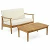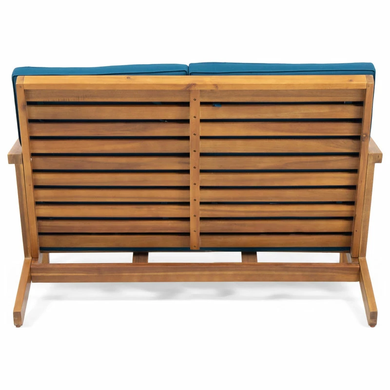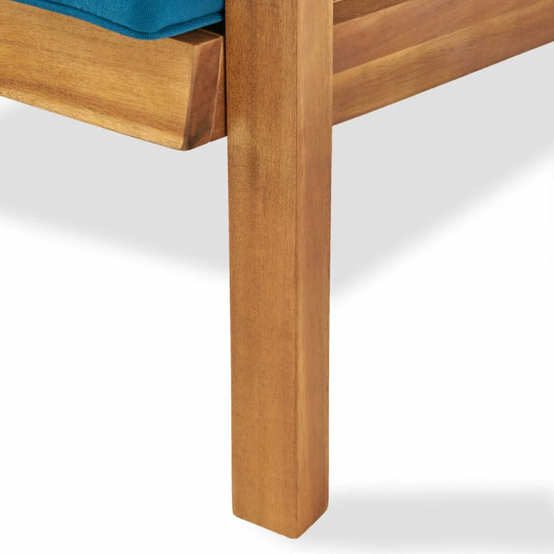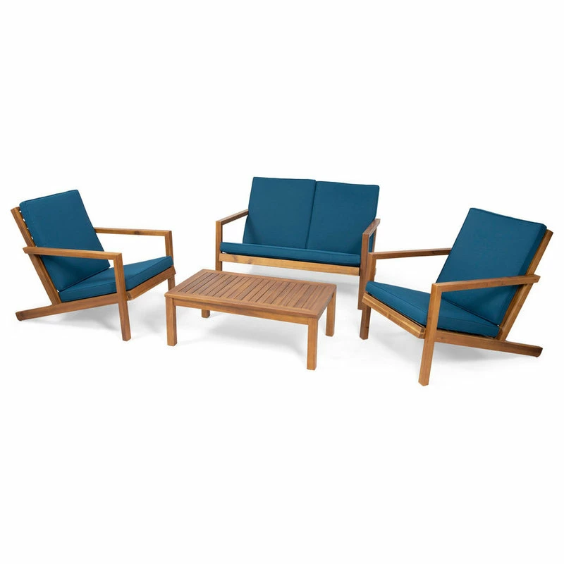 Fashion your outdoor space with a chat set that will not only enliven your conversation space but also provides excellent comfort. Our chat set uses a traditional Adirondack design with an edgy contemporary twist to create a masterpiece for your patio or backyard space. This set includes one loveseat, two club chairs, and one coffee table, making this your go-to space for an engaging conversation with guests. Featuring a beautiful acacia wood structure and weather-resistant cushions, this set is the perfect addition for your summer get-togethers.