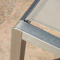 Create a backyard retreat or outfit your poolside cabana with our charming set of four outdoor chaise lounges. The straightforward, sleek, modern chaises feature breathable mesh seating for added contrast and texture. Boasting durable aluminum frames with adjustable functionality, these chairs are as robust as they are practical. Whether you use them independently for a minimalist look or or pair them with other outdoor seating, they’re sure to make a statement. Live a laid-back, breezy, and sunny life with our chaise lounge set.