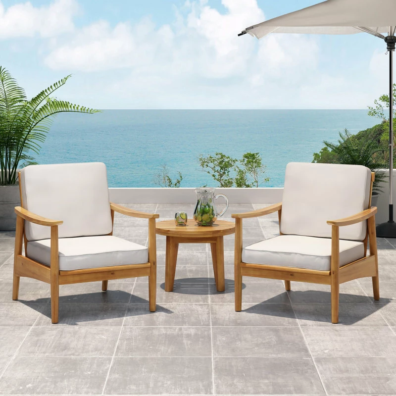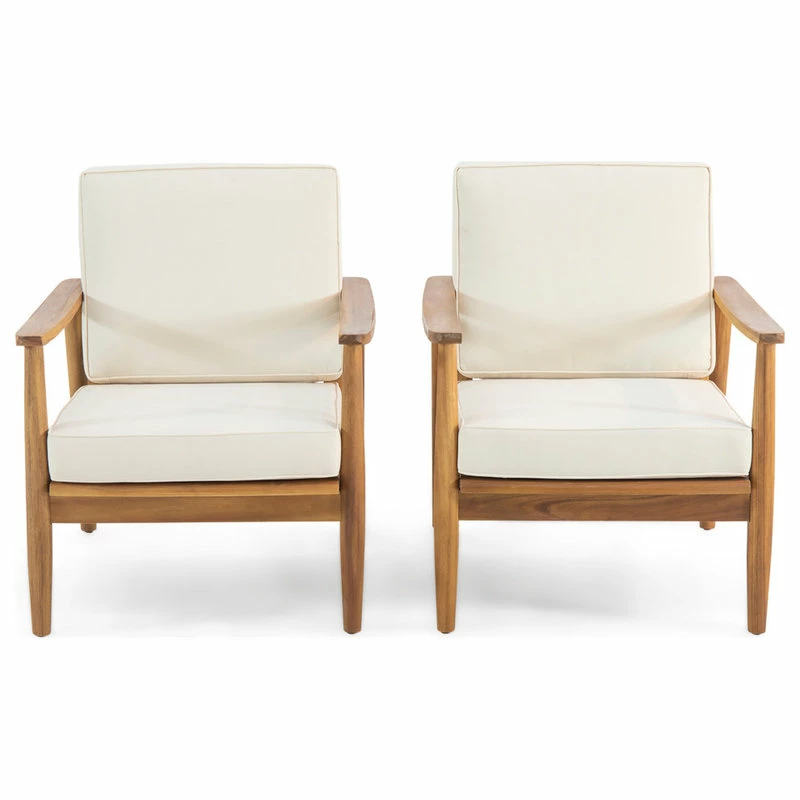 Refresh your outdoor space with a set of club chairs of stunning style and comfort. Our outdoor club chairs are made with gorgeous acacia wood frames that offer a rich, natural look and adds durability to your backyard or patio. The plush cushions help provide long-lasting comfort, so you can spend all day outside under the warm summer sun. Whether you are curling up with a good book or engaging in casual conversation, our set of club chairs will make sure you are as comfortable as you can be.