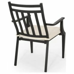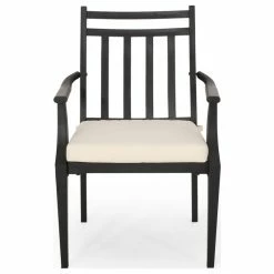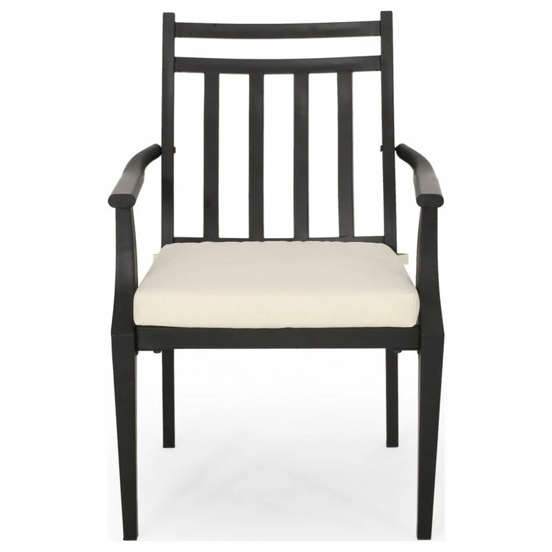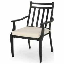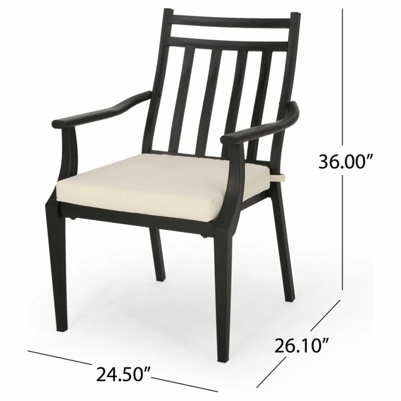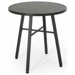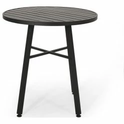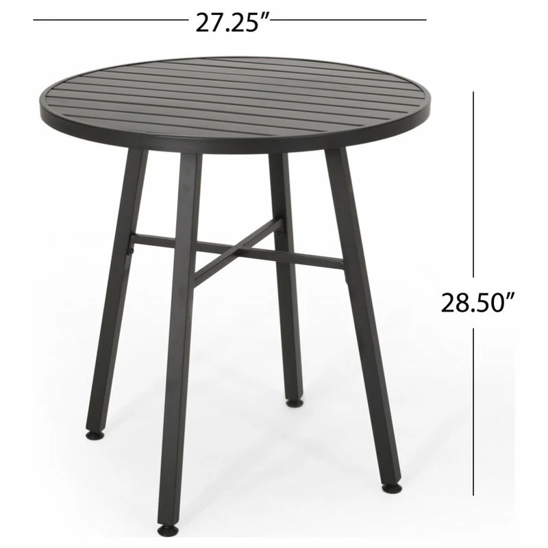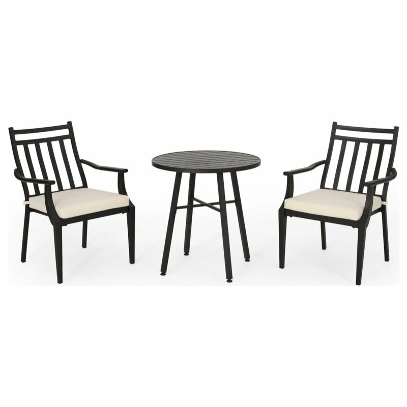 Enjoy a delightful meal or a chilled drink in the company of a loved one. Our bistro set offers your backyard or patio a cozy space to relax with its soft water-resistant cushions and sleek splayed legs. Featuring gorgeously curved frames and a sophisticated matte finish, this set offers a timeless yet modern style for your backyard while providing ultimate comfort. Complemented by a round slatted table, this lovely set brings your patio space a stunning upgrade with a classic look.