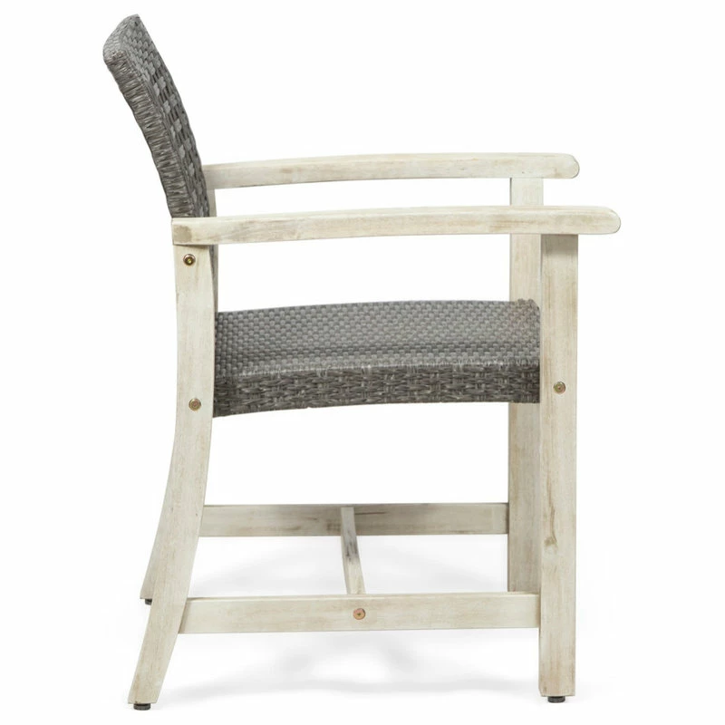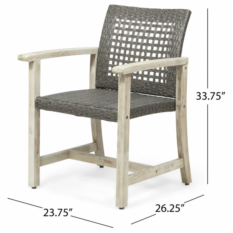 Accent your outdoor space with a set of chairs that will help you feel like you are one with nature. This set features beautiful, handwoven wicker seating that provides a classic, homey look for any patio or backyard. With comfortable seating, this chair set is perfect for enjoying the summer sun with a loved one or can be used to complete an existing set. Made with an acacia wood frame, this weather-resistant material leaves less time for hassle and more time for enjoyment.