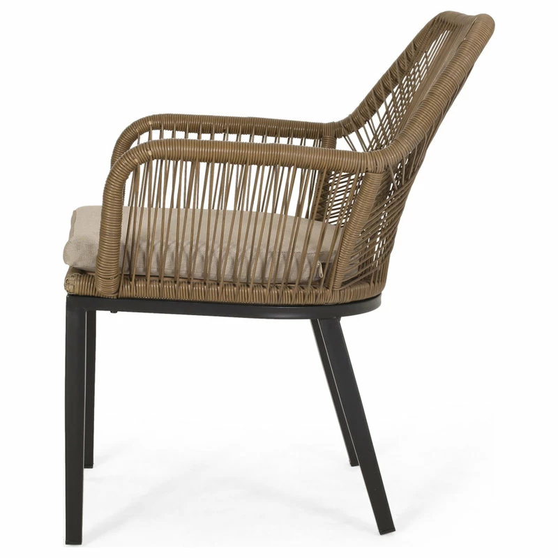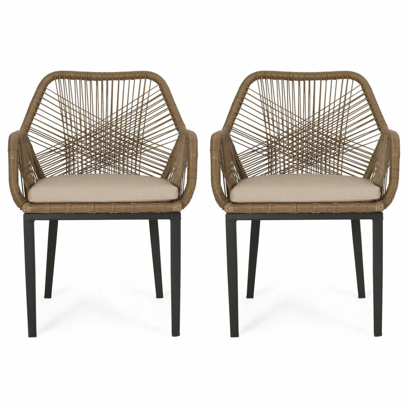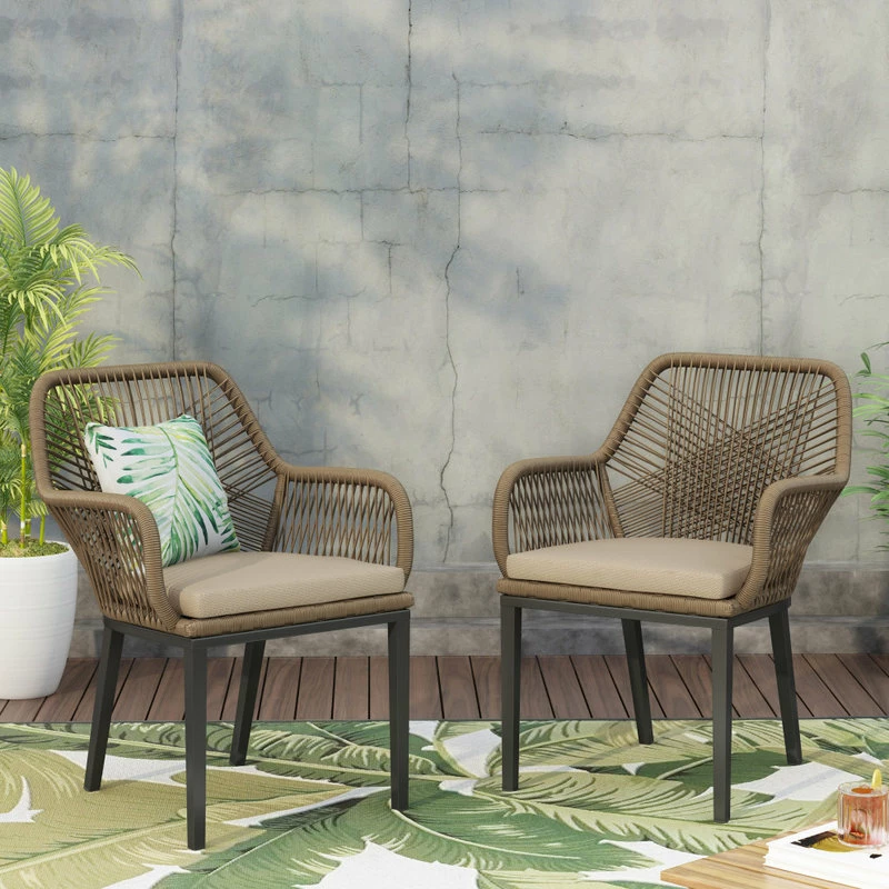 From outdoor dining to cozy lounging, our set of chairs is a versatile addition to your space. With graceful curves, a rattan weave finish, and sturdy splayed legs, these chairs come together to create an incredible masterpiece for your outdoor space. Our dining club chair set brings a charming yet minimalistic structure that has incredible stability and exquisite design. Finished with cozy water-resistant cushions, this set brings a cozy and timeless look to your outdoor space, giving an undeniably stylish flair to your home.