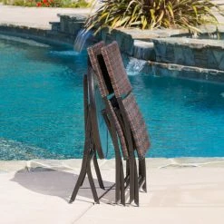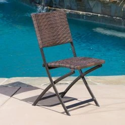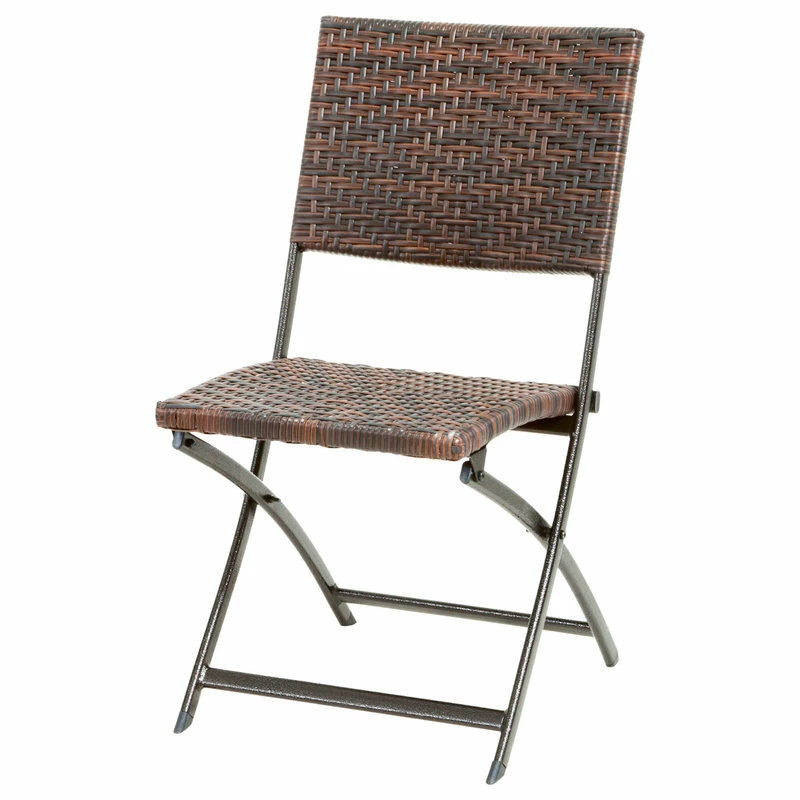Constructed from all-weather brown PE wicker and steel materials. Contemporary style will add elegance to your backyard or patio. Folds flat for easy transport; ideal for additional seating, picnics or camping. No assembly required; comes ready to use. Neutral colors to match any outdoor decor.