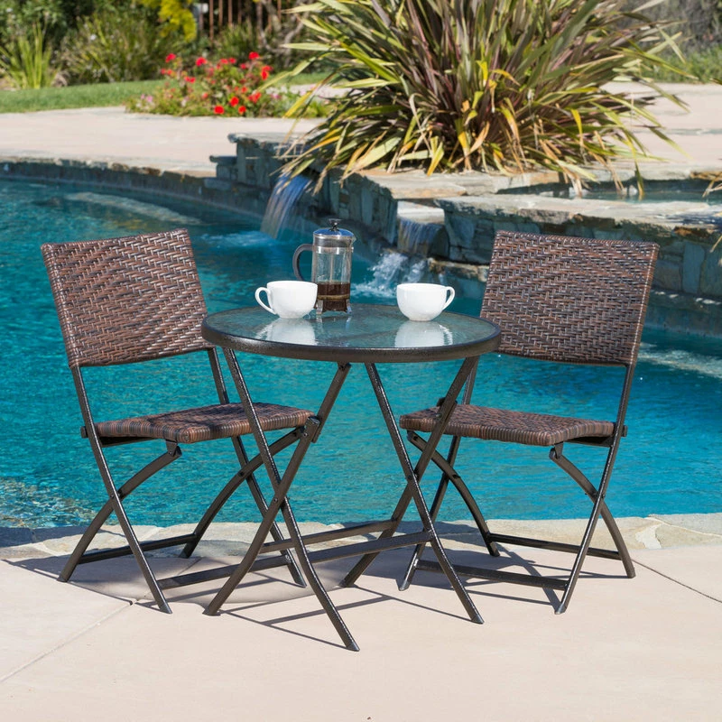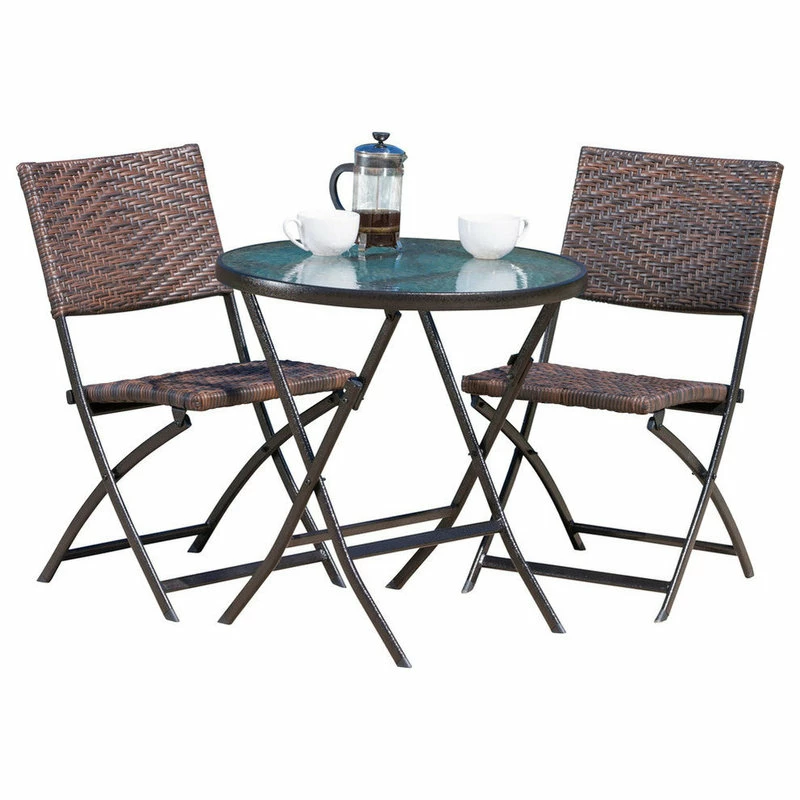 The Cantinela 3-piece folding bistro set is ideal for any outdoor space. The pattern on the chairs adds eye catching detail, while the table remains simple for functionality. All three pieces fold flat, making the set easy to store and transport without compromising its sleek lines and visual appeal.