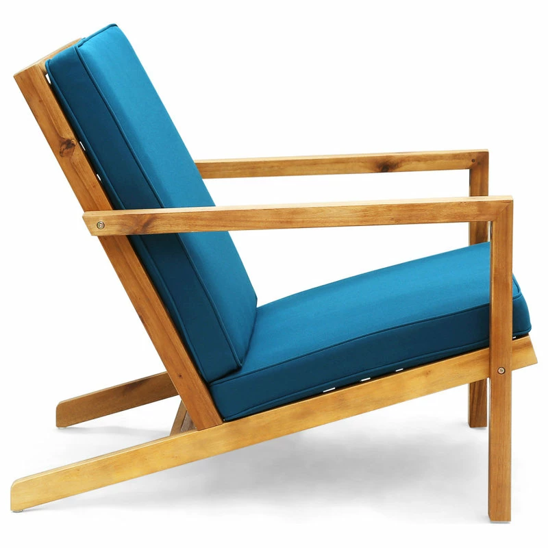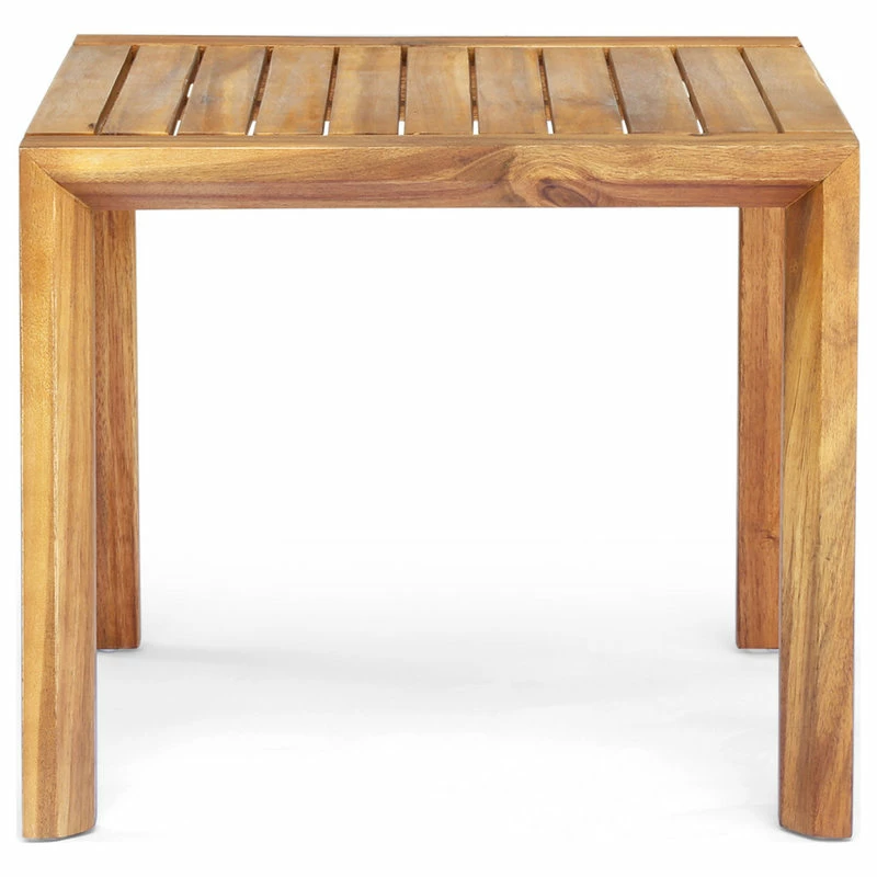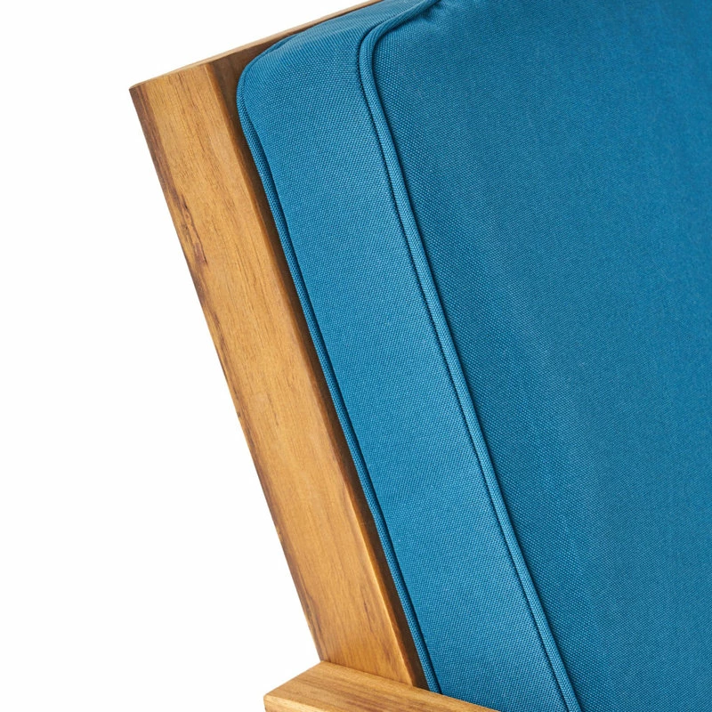 Replace your mismatched patio furniture with our coordinated and completely stylish outdoor chat set. Offering space for two, this collection offers a side table and two chairs. The beloved Adirondack chair gets a modern upgrade in the form of these chairs, which are topped with practical, yet comfortable water-resistant cushions. Acacia wood construction promises durability and warmth, and the slat paneled tabletop adds texture and fine detail. The inviting ambiance you love is within reach when you incorporate this stunning collection.