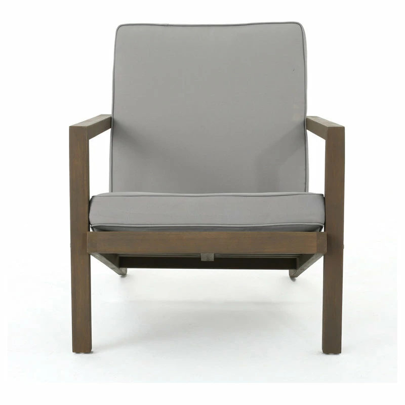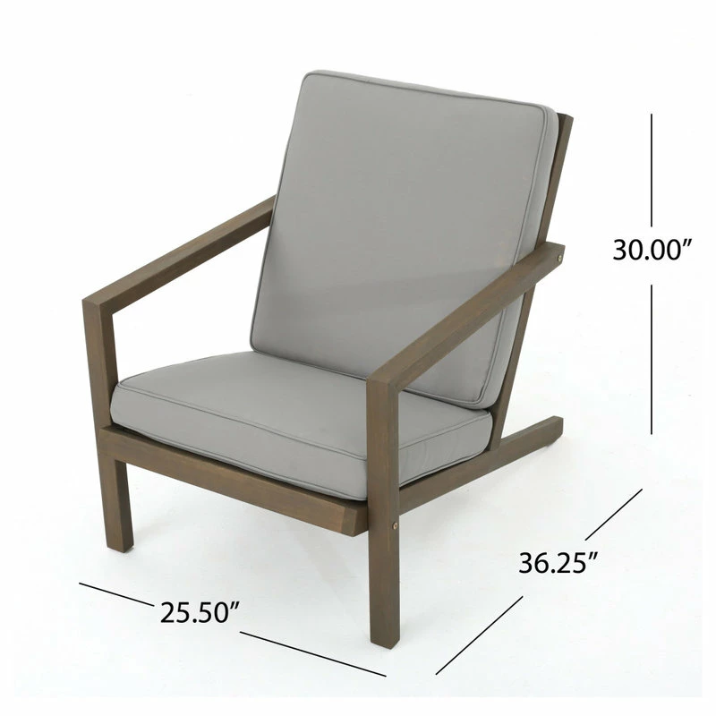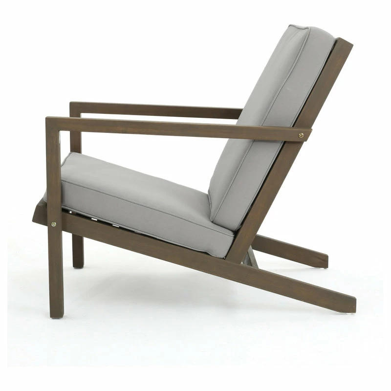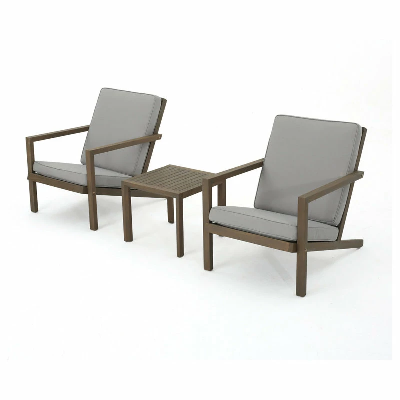 Replace your mismatched patio furniture with our coordinated and completely stylish outdoor chat set. Offering space for two, this collection offers a side table and two chairs. The beloved Adirondack chair gets a modern upgrade in the form of these chairs, which are topped with practical, yet comfortable water-resistant cushions. Acacia wood construction promises durability and warmth, and the slat paneled tabletop adds texture and fine detail. The inviting ambiance you love is within reach when you incorporate this stunning collection.