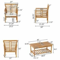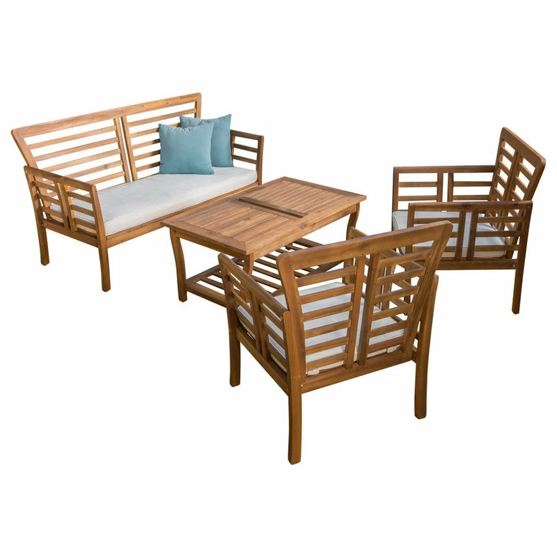 The Louis outdoor 4-piece acacia wood chat set with cushions offers all the benefits and style of an indoor set with the durability to be kept outdoors. The Louis outdoor 4-piece chat set, takes entertaining guest to a whole new level.