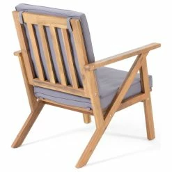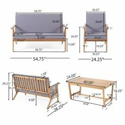 This outdoor chat set is a great addition for any patio. Complete with loveseat, two club chairs, and a coffee table, this set is sure to impress. Made with top quality acacia wood and water resistant fabric cushions, this set was made to live in your backyard. Enjoy your entire summer outside with this chat set.