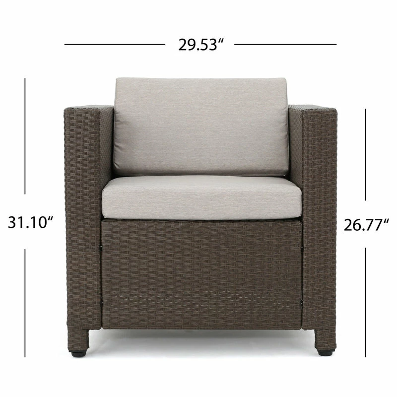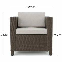 Entertain your guests outdoors while giving them plenty of room and even a place to set their drink or plate. With the included plush cushions, you can chat for hours in the comforts of the outdoors.