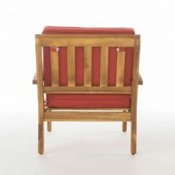 This deep seated chat set is great for any back yard. With their acacia wood frame, this set is very sturdy; perfect for continued outdoor use. The thick cushions help provide continued and long lasting comfort, so you can spend all day outside without tiring out your bottom. Also, the cushions water resistant covering help provide an easy to clean surface for all of life’s little messes.