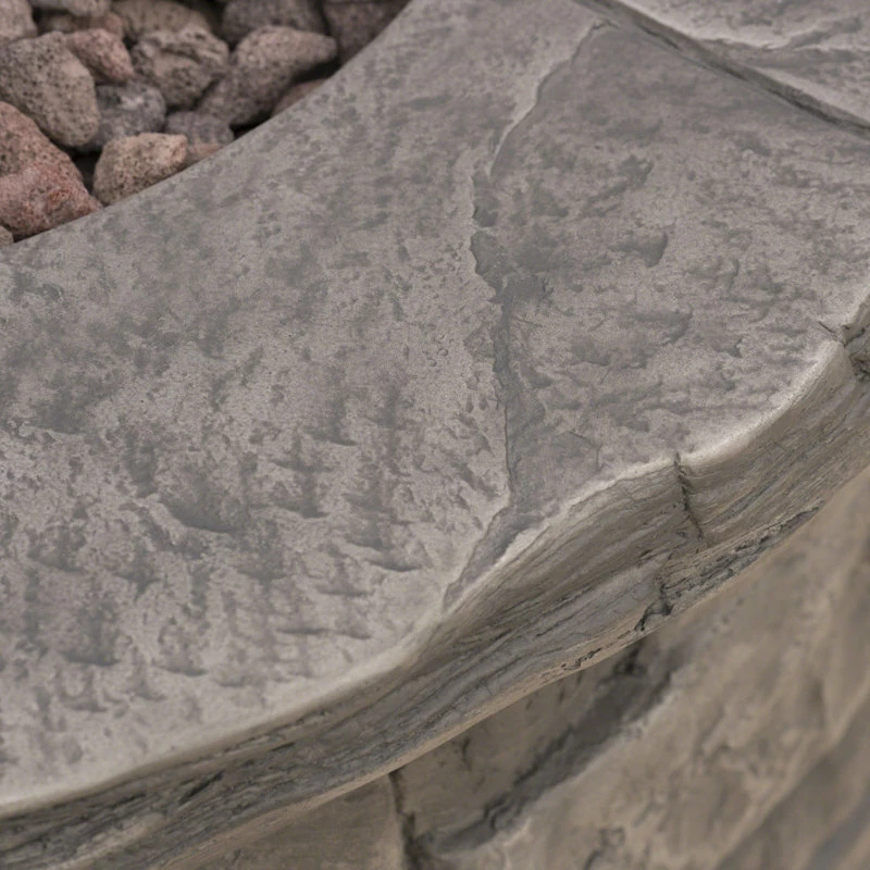 CIRCULAR FIRE PIT: This fire pit is constructed in a circular shape with lightweight concrete, featuring hand-crafted details that bring out the beautiful stone look of this piece. The shape allows easy seating arrangement for you and your guests, providing light and warmth all around during those chilly evenings.