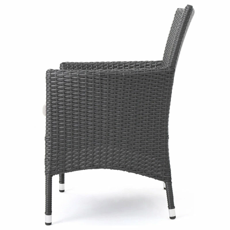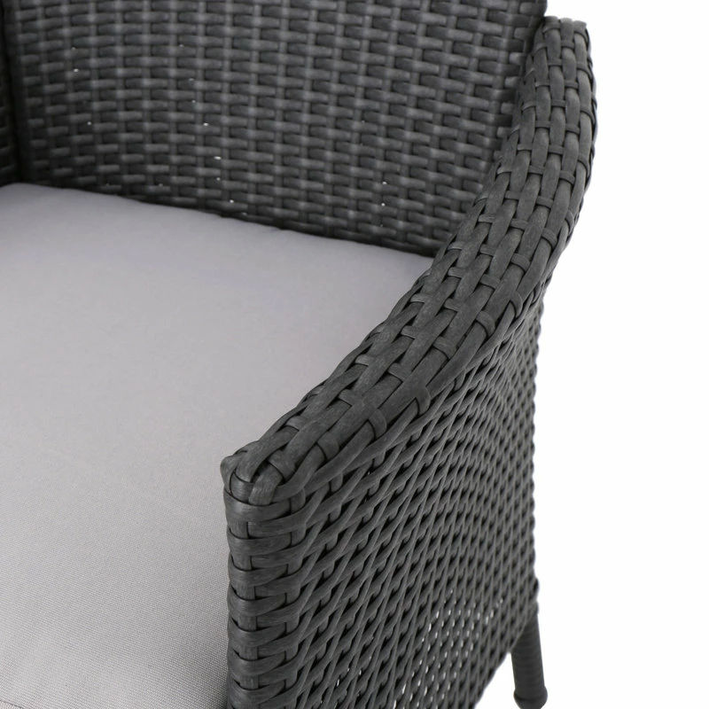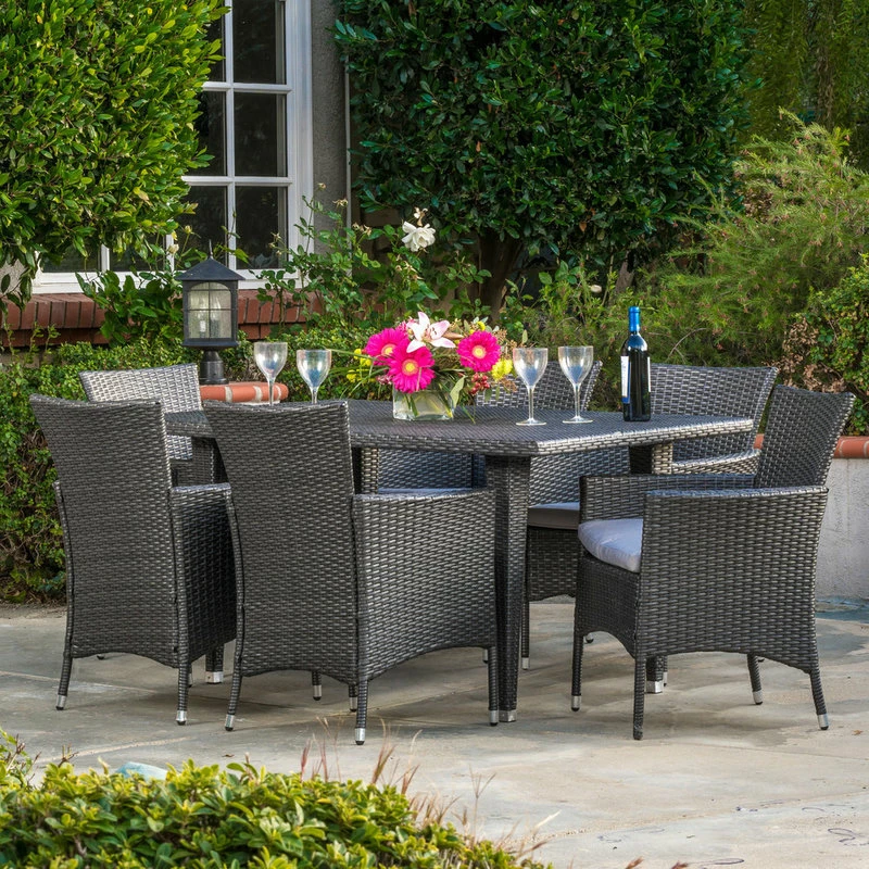 Enjoy outdoor dining and relaxing with the Malta seven piece outdoor dining table set. Constructed of beautiful wicker, this table and chairs set is durable and comfortable. It will put outdoor dining into a whole new level. This design will go well with any garden or backyard arrangements and landscaping.