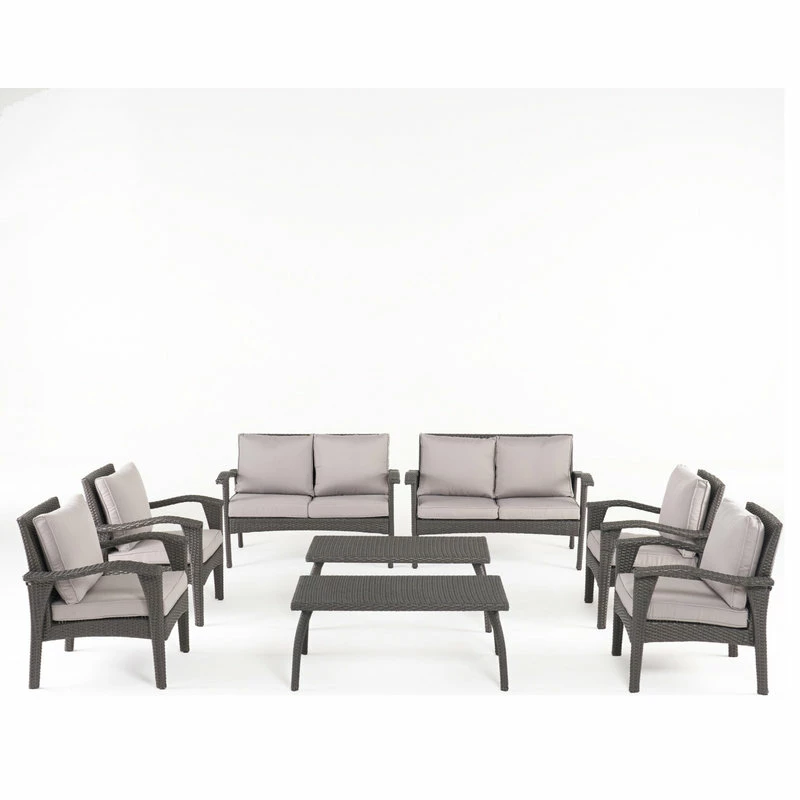 - Set includes 4 armchairs, 2 sofa, and 2 coffee table
