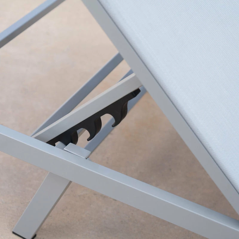 This elegant and unpretentious set of chaise lounges is perfect for sunbathing or poolside relaxing. Made from the highest-quality mesh and aluminum, they are light and maneuverable and yet, at the same time, highly durable. These will be the source of years of enjoyment.