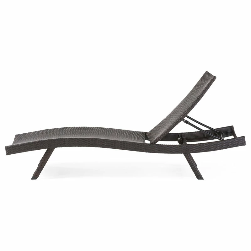 Lounge in the outdoors in modern style and comfort with the Eliana Chaise Lounge Chair. Constructed from all-weather resistant wicker wrapped around an iron frame, the Eliana Chaise Lounge Chair is designed with you in mind. The seat curves are designed to conform to the body and the adjustable features allows users to adjust the backrest to their preference. Perfect for tanning and enjoying the outdoors or pool side, you will want to purchase a few of these chaise lounge chairs. Features curved design and adjustable backrest, Suitable for tanning and poolside lounging