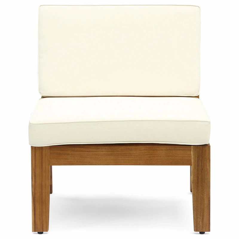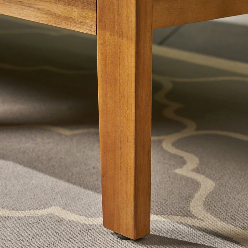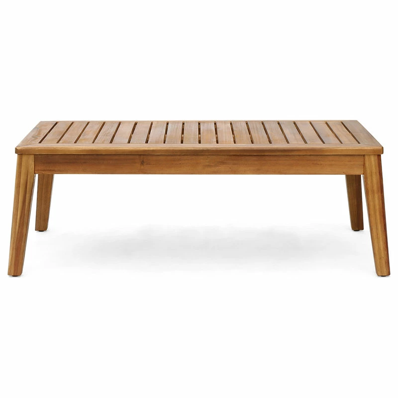 Create the patio living space of your dreams, starting with this gorgeous outdoor sofa chat set. The three-seater, two-piece collection includes a chaise sofa and coordinating slatted coffee table, and water-resistant cushions make the perfect finishing touch. Made of durable acacia wood for its rich look and durability, this set will keep you comfortable through each season. Whether you use these pieces to inspire a whole new outdoor aesthetic or as part of your existing patio design, the set will fully transform your outdoor space.