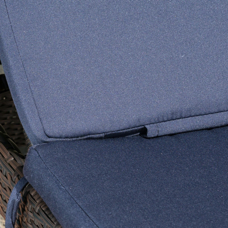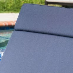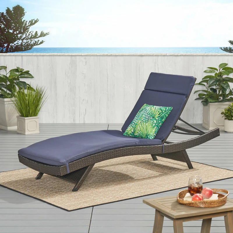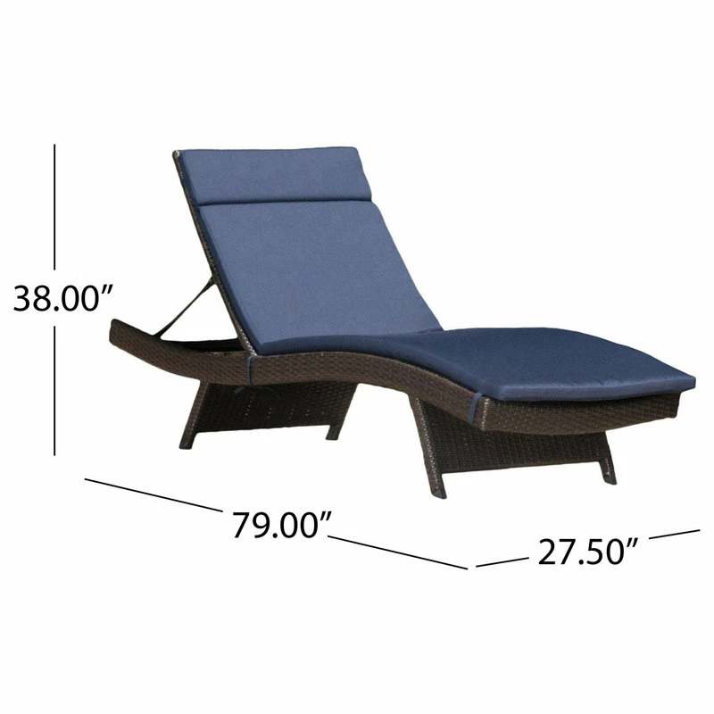 Add some stylish comfort to your patio decor with this wicker lounge. This chair comes with a weather-resistant, UV-protected Navy cushion that allows you to dress up your deck or patio without the fear of wear and fading. Kick back on this lounge chair when sunbathing, or adjust it upright for outdoor reading or socializing.