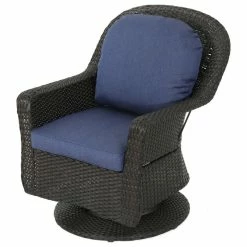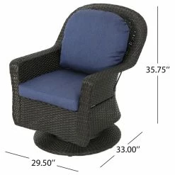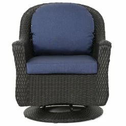 This two-piece club chair set has everything you’d want from your outdoor furniture – ultimate comfort, unsurpassed functionality, and extreme durability. Set on swivels to ensure that you and your guests will always be facing in the direction of the most beautiful sights, this chair is made from the highest quality rattan and iron construction. The cushions are water-resistant and built to give you years of enjoyment
