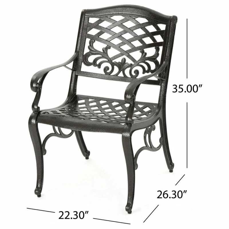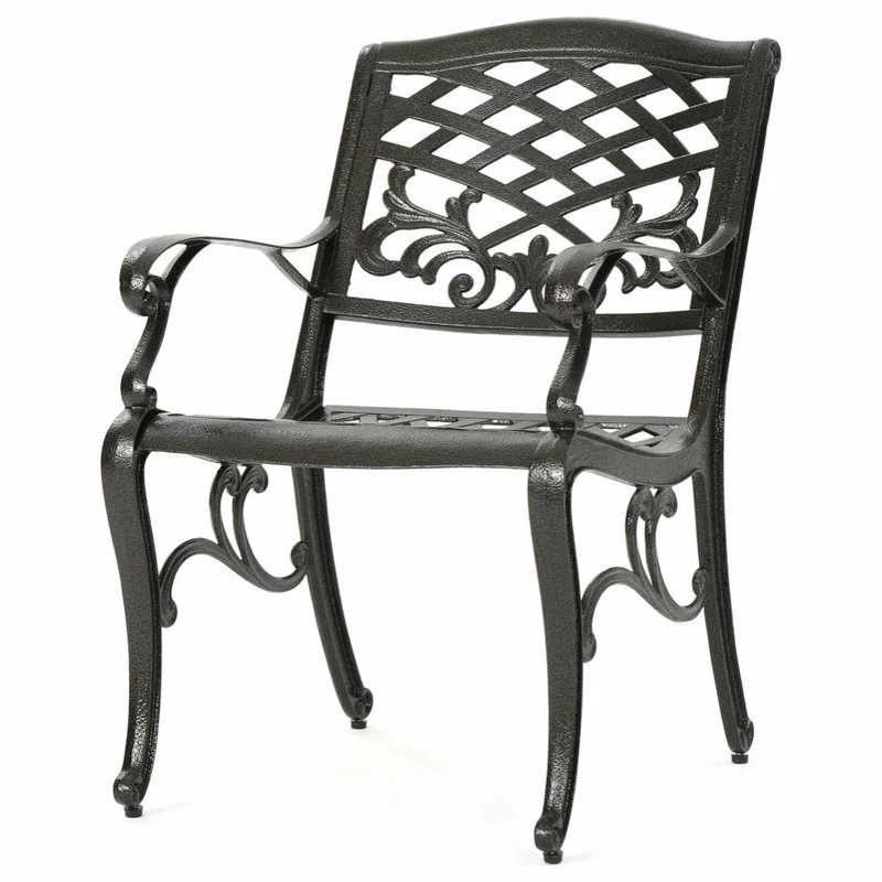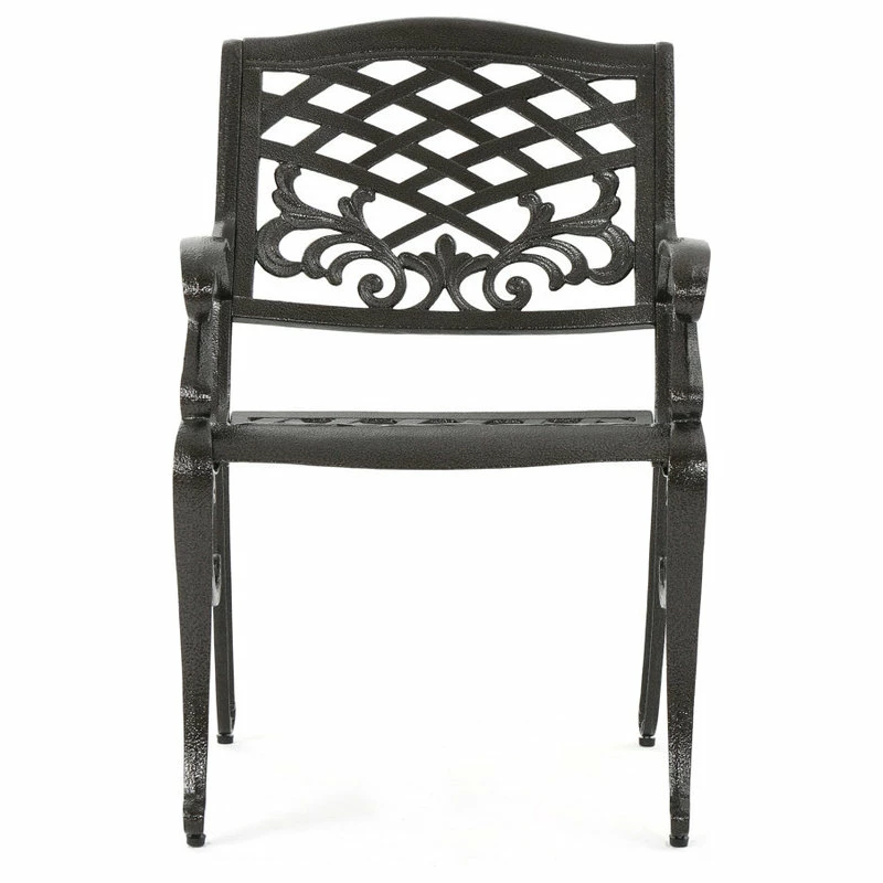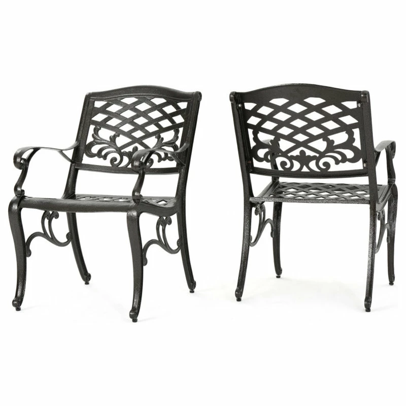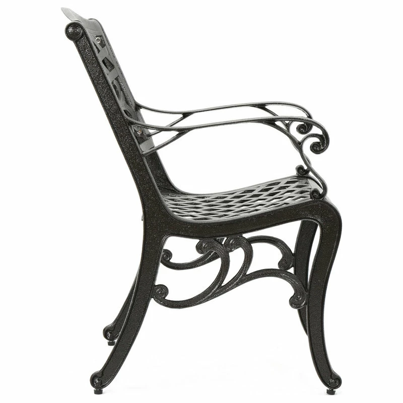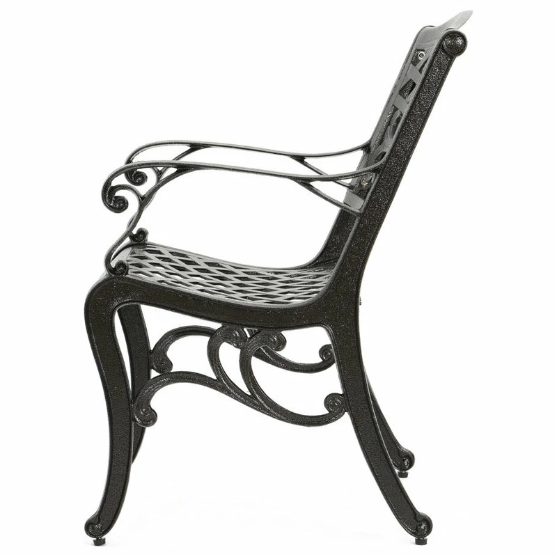 SCROLL DESIGN: The chairs of this set advertise a traditional scroll design that comes from French influences during the Baroque period. With this beautiful feature incorporated into the armrests of the chair, this set offers intricate details that add an elegant touch to your outdoor decor.